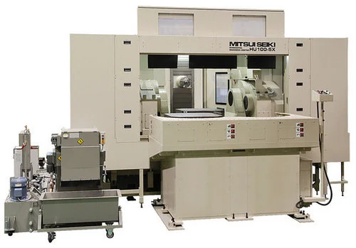 MITSUI SEIKI High Performance Machining Center Model HU100-5X with 1,000 mm square table. With a trunnion style two axis table and two Pallet Box Style and features including a Two Pallet APC. Numerically controlled with all standard equipment Automatic Tool Changer, and high performance capability for milling, drilling, boring, tapping & reaming. With electrical equipment for operation on 3-phases 50/60Hz, 200/220 Volts AC.