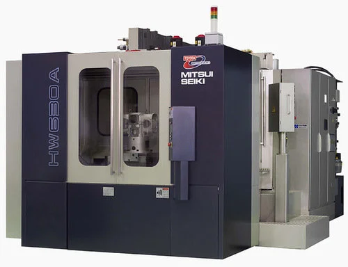 MITSUI SEIKI High Production Machining Center Model HW630A with 630 mm square pallets. Numerically controlled with all standard equipment and features including: Automatic Tool Changer, Automatic Pallet Changer, and high production capability for drilling, boring, tapping, and reaming. Integrated circuit logic, closed loop, complete with electrical equipment for operation on: 3-phases, 50/60Hz, 200/220 Volts AC.
